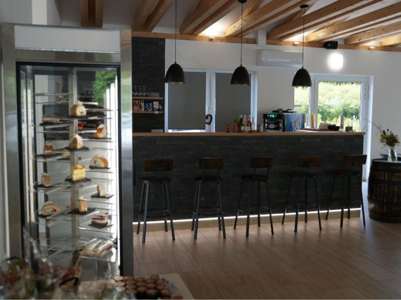 Ein geräumiges Café in einem Pavillon mit Vorgarten lädt zum Verweilen in angenehmer Atmosphäre ein. In der Nähe befinden sich ein Teich mit Enten, ein Kinderspielplatz und ein Damwildgehege. Es bietet das gleiche Sortiment wie das Café im Gebäude C – von Kaffee bis zu hausgemachten Süßigkeiten – und bietet zusätzlich die Möglichkeit, Futter für die Damwild zu kaufen, was jedem Spaziergang Abwechslung verleiht.